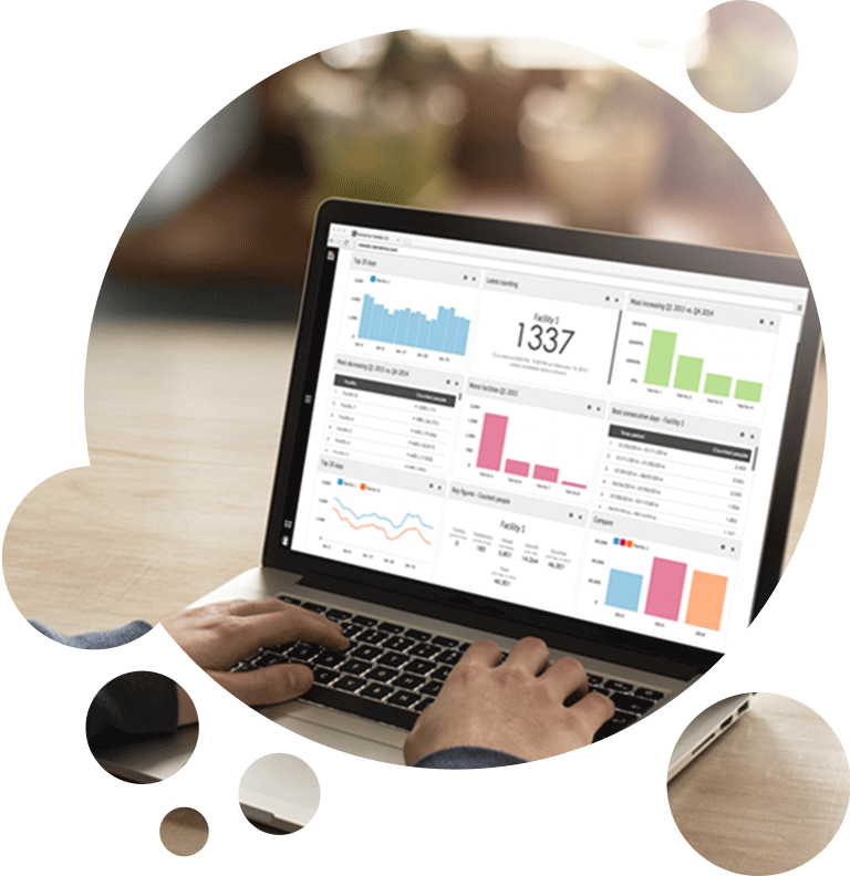 Få en snabb överblick med hjälp av instrumentpaneler eller skapa mer djupgående analyser. ViaWeb underlättar jämförelser av butiker och köpcentrum över tid, oavsett geografisk placering.