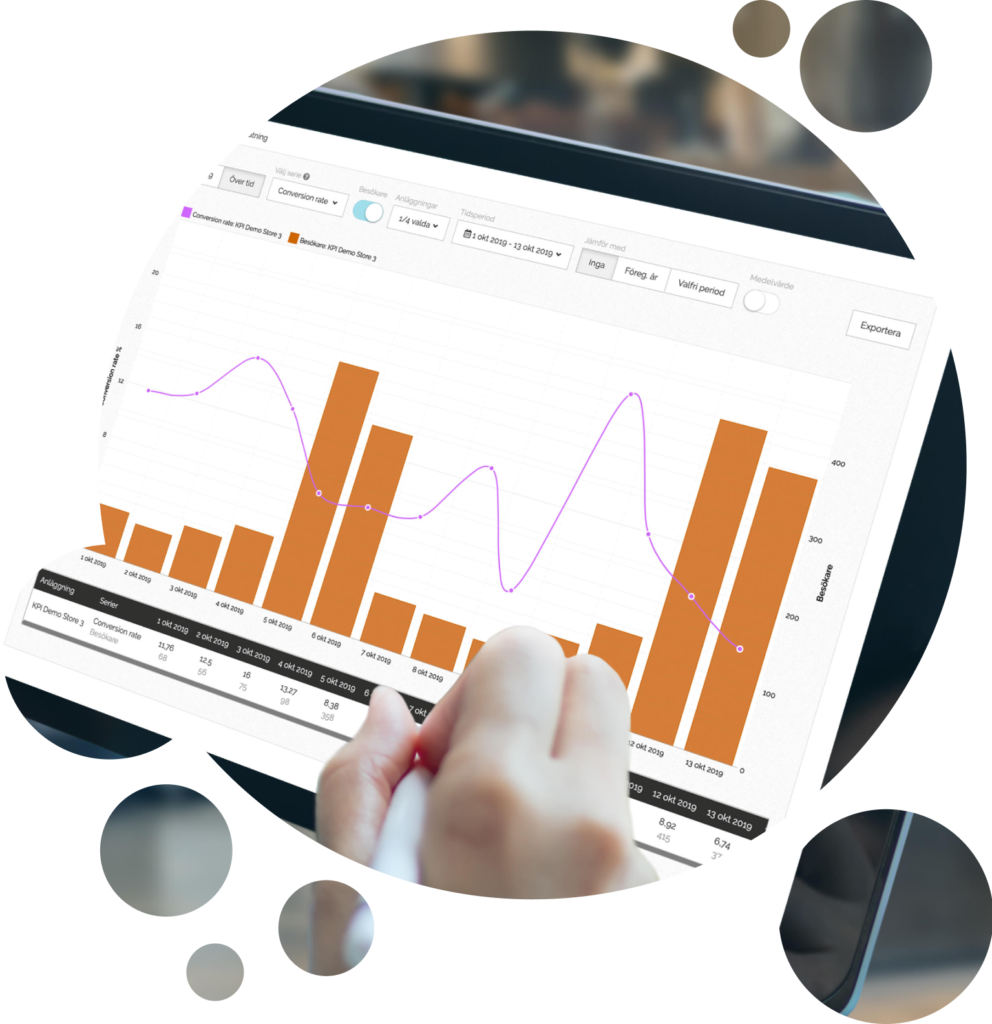 ViaKPI gör det möjligt att analysera din butiks nyckeltal direkt i vårt analysverktyg ViaWeb. Det ger er förutsättningar att snabbt identifiera områden som kan bli mer lönsamma.